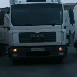 Caminhão branco com faróis acesos em um ambiente escuro.