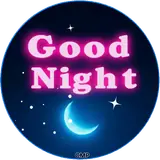 Uma placa de madeira com a inscrição 'GOOD NIGHT' em letras claras, em um cenário noturno com lua, estrelas e nuvens…