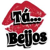 Um par de lábios com marca de beijo vermelho e o texto 'Tá... Beijos' em preto com contorno branco.