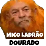 Um homem com cabelo e barba laranja, semblante sério, com texto 'MICO LADRÃO DOURADO' embaixo.
