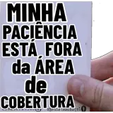 brasilreaçãoUma mão segura um papel branco com o texto 'MINHA PACIÊNCIA ESTÁ FORA DA ÁREA DE COBERTURA' em letras pretas grandes.Agregado el 13 de abril de 2026·Texto · Reacciónmemepaciênciaironia