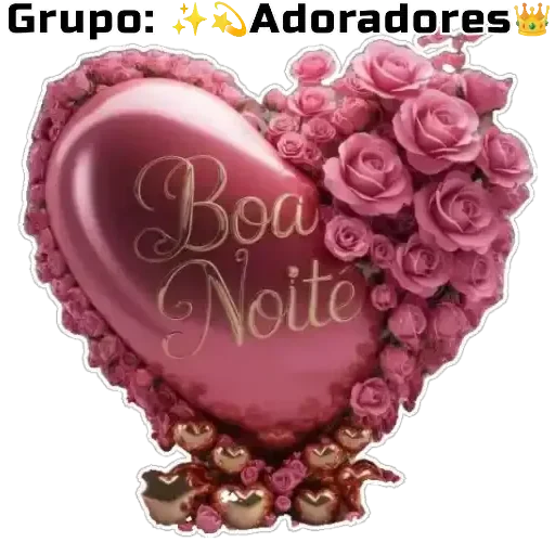 Un corazón rosa brillante con rosas y el mensaje 'Boa Noite' en letras doradas, rodeado de flores y decoraciones.