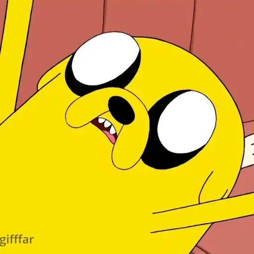 Personaje de dibujo animado amarillo con ojos grandes y expresión confundida o asustada, fondo rojo.