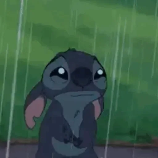 Stitch de Lilo & Stitch sorri com um bule de café quente, usando um suéter rosa. Ele tem os olhos fechados e um sorriso…