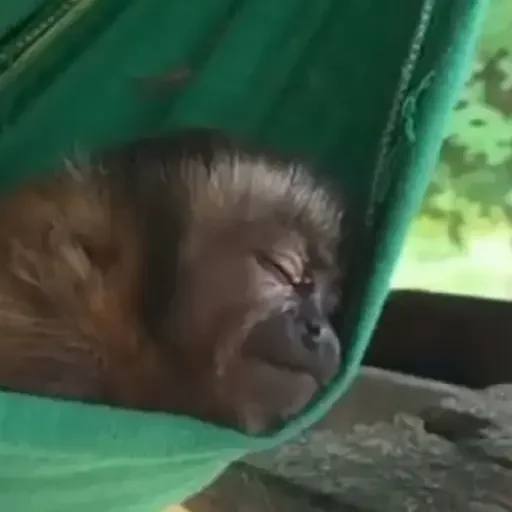 Un perro marrón está acostado en una hamaca verde, con los ojos cerrados y una expresión relajada.