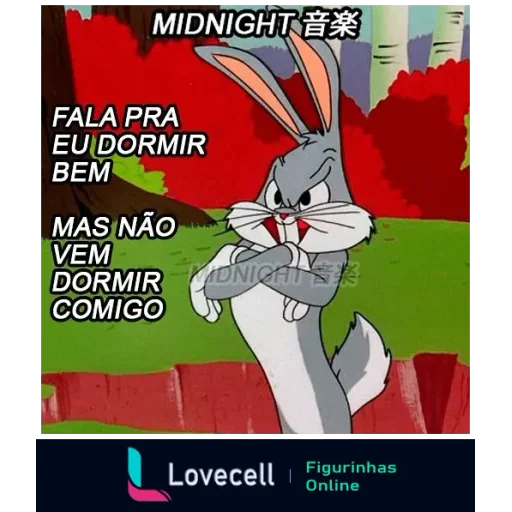 Bugs Bunny com expressão de desaprovação, texto "CANCELA O CHOCOLATE Q O DOCINHO CHEGOU" em amarelo.