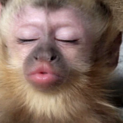 Macaco com expressão séria, mãos posicionadas ao redor da cabeça como se estivesse com dor de cabeça, fundo cinza.