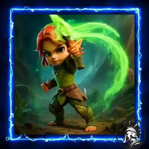 Personaje de anime con cabello naranja y ropa verde, con un aura verde brillante alrededor, en una postura de lucha.