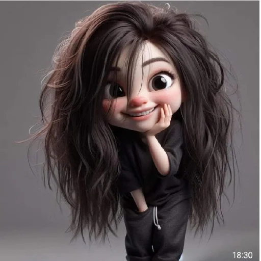 Una niña con cabello castaño largo y una sonrisa tímida, con la mano en el rostro.