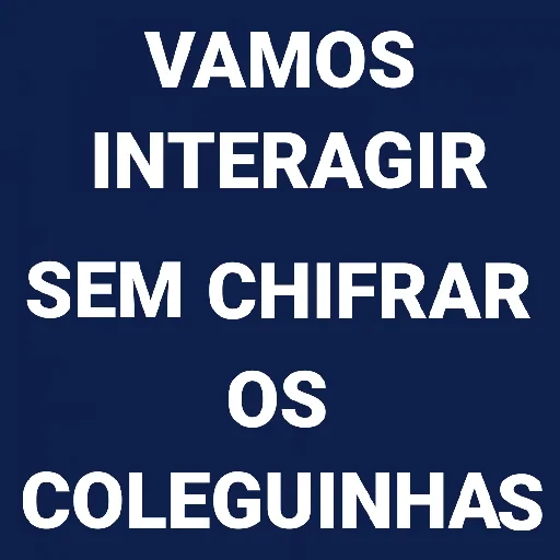 Un fondo azul oscuro con el texto 'VAMOS INTERAGIR SEM CHIFRAR OS COLEGUINHAS' en letras blancas mayúsculas.