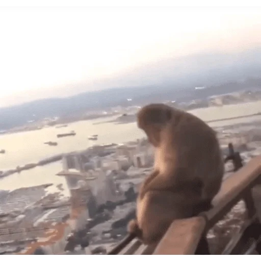 Macaco com expressão de surpresa ou dor de cabeça, com a mão na cabeça.