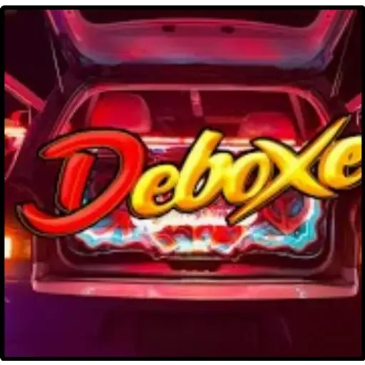Un coche con el maletero abierto y el texto 'Deboxe' en letras coloridas.