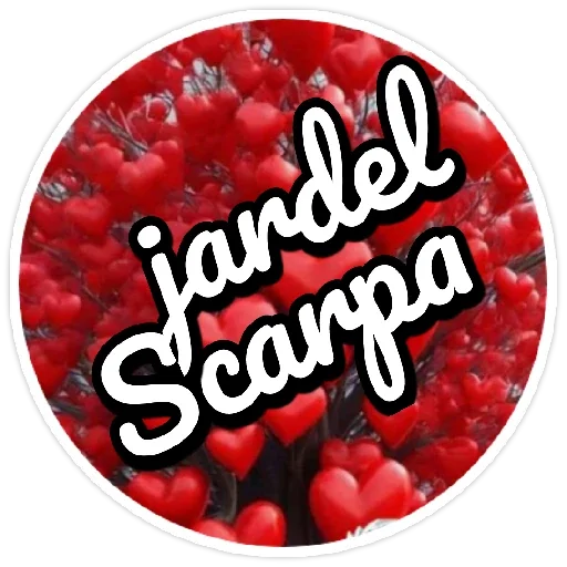 Un círculo con fondo de corazones rojos y el texto "jandel Scarpa" en blanco con contorno negro.