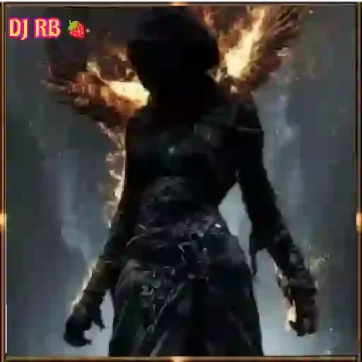 Silueta de una mujer de vestido negro con llamas naranjas y amarillas de fondo. En la esquina superior izquierda, aparece 'DJ RB' en letras rojas.
