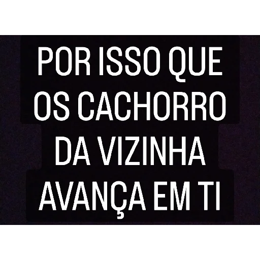 Un rectángulo negro con texto blanco en portugués que dice: 'POR ISSO QUE OS CACHORRO DA VIZINHA AVANÇA EM TI'.