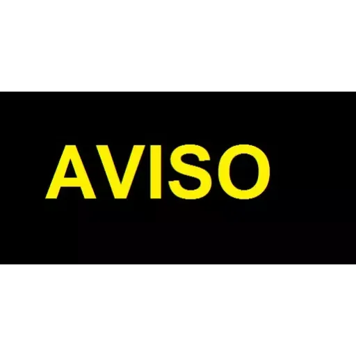 Un aviso en letras mayúsculas amarillas sobre fondo negro.