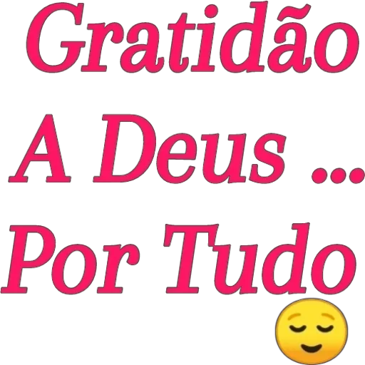 Un fondo blanco con las palabras 'Gratidão A Deus ... Por Tudo' en letras grandes y rosadas. Debajo del texto, un emoji de cara sonriente con los ojos cerrados.