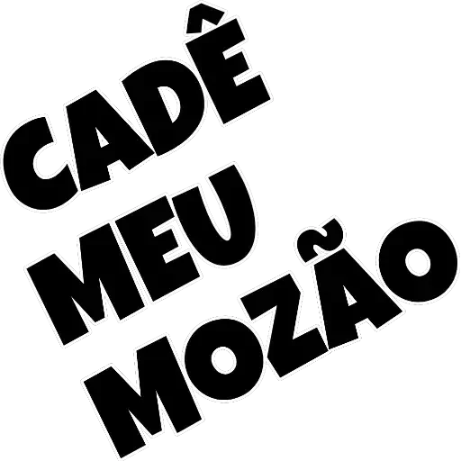 Un texto en negro que dice 'CADE MEU MOZÃO' en letras grandes y oblicuas.