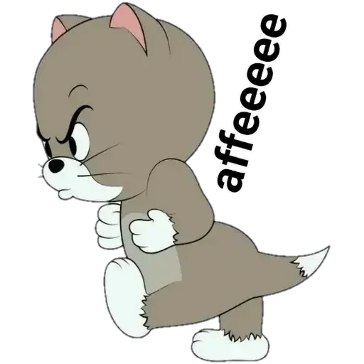 Un gato cartoon gris con orejas rosadas y expresión de desagrado, con el texto 'affeeeee' al lado.
