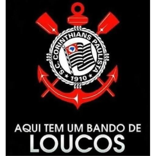 Escudo del Corinthians con ancla y texto 'Aqui tem um bando de loucos'