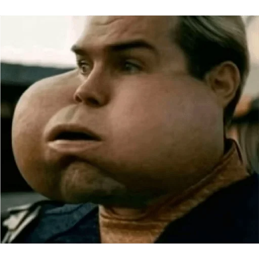 Rostro de un hombre con una mejilla extremadamente grande y roja, pareciendo una reacción de sorpresa o impacto. Está usando una camisa oscura.