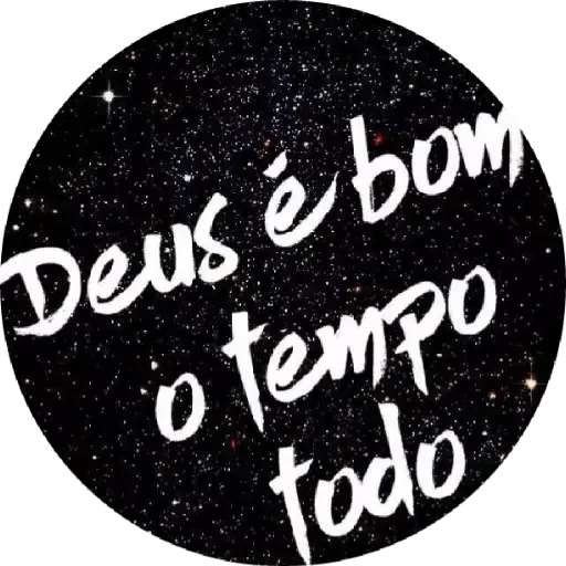 Un círculo negro con estrellas y la frase 'Deus é bom o tempo todo' escrita en blanco.