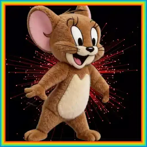 Tom, el gato de dibujos animados, con una expresión feliz y animada, en un fondo negro con efectos de luz roja.