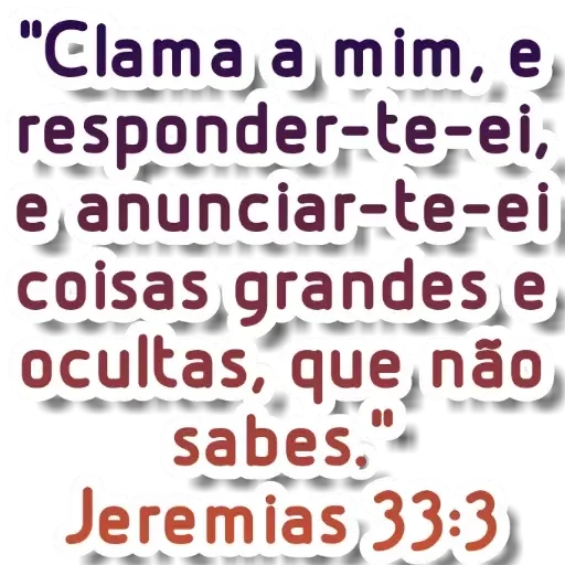 Una cita del libro de Jeremías 33:3, 'Clama a mí, y te responderé, y te anunciaré cosas grandes y ocultas, que no sabes.' en texto colorido.