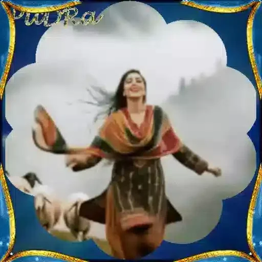 Uma mulher com cabelos castanhos e um lenço colorido na cabeça, vestindo uma roupa tradicional, sorri com os olhos…