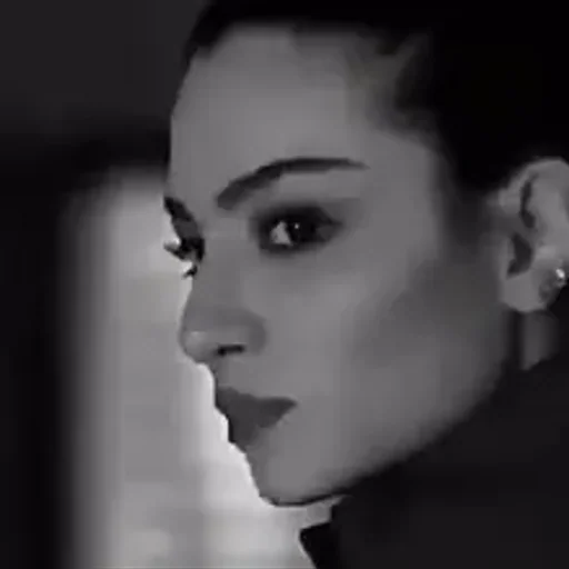 Rosto de mulher com expressão pensativa, olhar para baixo, em preto e branco.