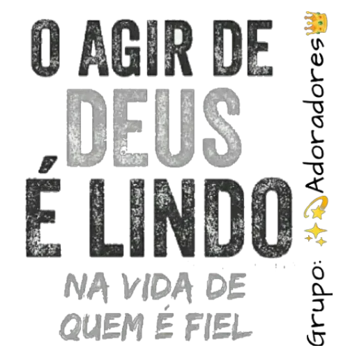 Un sticker con la frase 'O AGIR DE DEUS É LINDO NA VIDA DE QUEM É FIEL' en letras grandes y coloridas, con el texto 'grupo: Adoradores' al lado.