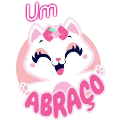 Un gato blanco con una cinta rosa en la cabeza y una expresión feliz, con el texto 'Um ABRAÇO' en letras grandes y rosadas.