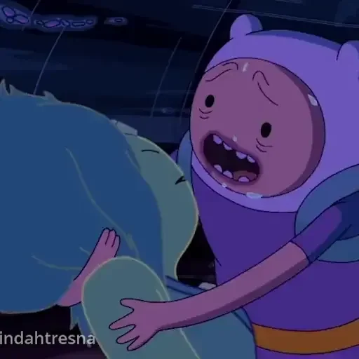 Rosto de Finn, personagem de Adventure Time, com expressão neutra e fundo verde. Ele está usando uma fantasia de lobo.