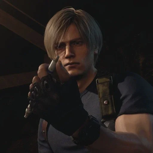 Personagem de jogo de videogame com cabelo loiro e expressão séria, vestindo roupas escuras.