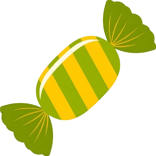 Un caramelo verde y amarillo envuelto con hojas verdes.
