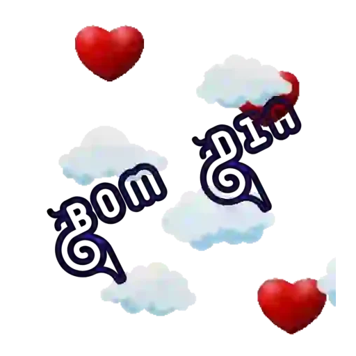 Corazón rojo y nubes con el texto 'Bom Dia' en azul y blanco.