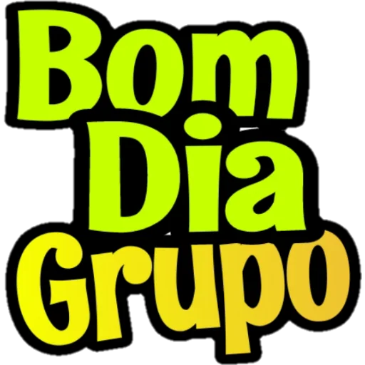 Un texto colorido que dice 'Bom Dia Grupo' en letras grandes y bold, con 'Bom' y 'Dia' en verde y 'Grupo' en amarillo.