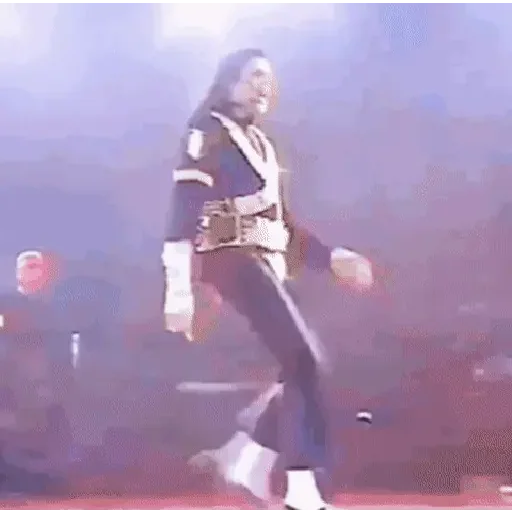 Michael Jackson com expressão surpresa e mão na boca, vestindo uma jaqueta vermelha, com pessoas ao fundo.
