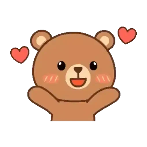 Un osito marrón con mejillas rosadas y ojos amorosos, con dos corazones rojos al lado.