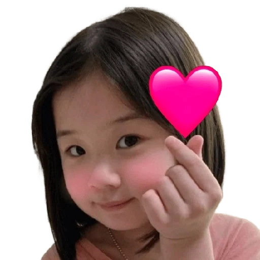 Rosto de uma criança com corações rosa ao redor, alguns com emojis sorrindo. A criança tem cabelo preto e parece triste…