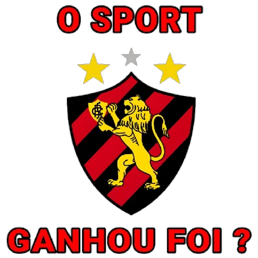 Escudo con un león dorado en fondo rojo y negro, con las palabras 'O SPORT GANHOU FOI ?' en rojo. Tres estrellas, dos amarillas y una gris, están encima del escudo.