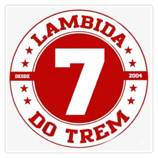 Un logotipo con el número 7 en blanco en un círculo rojo, rodeado de texto rojo que dice 'LAMBIDA DO TREM' y estrellas rojas.