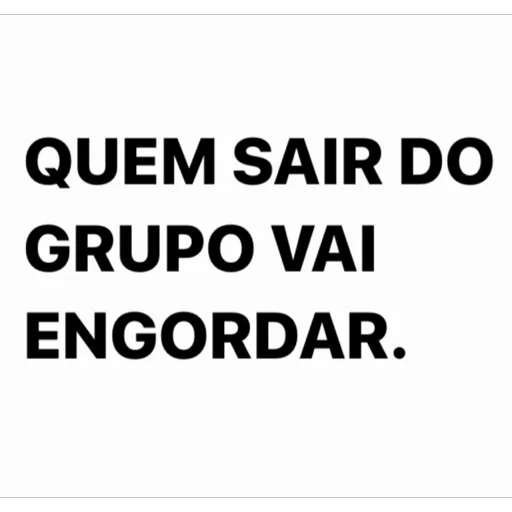 Un texto en negro sobre fondo blanco que dice 'QUEM SAIR DO GRUPO VAI ENGORDAR.'