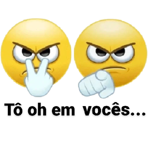 Dos emojis de cara enojada, uno haciendo un gesto obsceno y el otro señalando. Debajo de ellos, el texto 'Tô oh em vocês...'