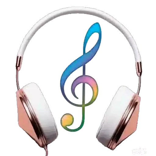 Um coração azul brilhante com uma clave de sol no centro, cercado de notas musicais coloridas e estrelas.