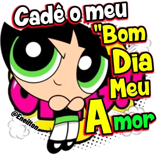 Uma figurinha colorida da Blossom, personagem do desenho Powerpuff Girls, com expressão feliz e olhos grandes. Ela tem…