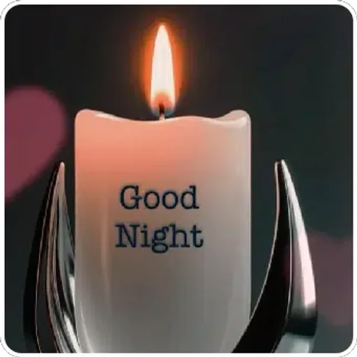 Uma mensagem de 'Good night' em letras roxas cursivas, cercada por corações e estrelas em um fundo escuro.