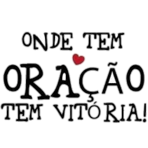 Una frase 'ONDE TEM ORAÇÃO TEM VITÓRIA!' en letras grandes y negras con un corazón rojo entre las palabras, en un fondo blanco.