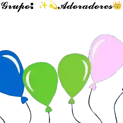 Cuatro globos de colores, uno azul, dos verdes y uno rosa, con el texto 'Grupo: Adoradores' encima de ellos.