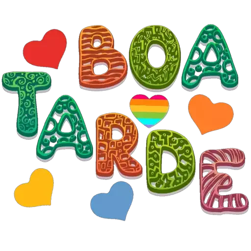 Buenas tardes escrito en letras coloridas decorativas, con corazones alrededor.